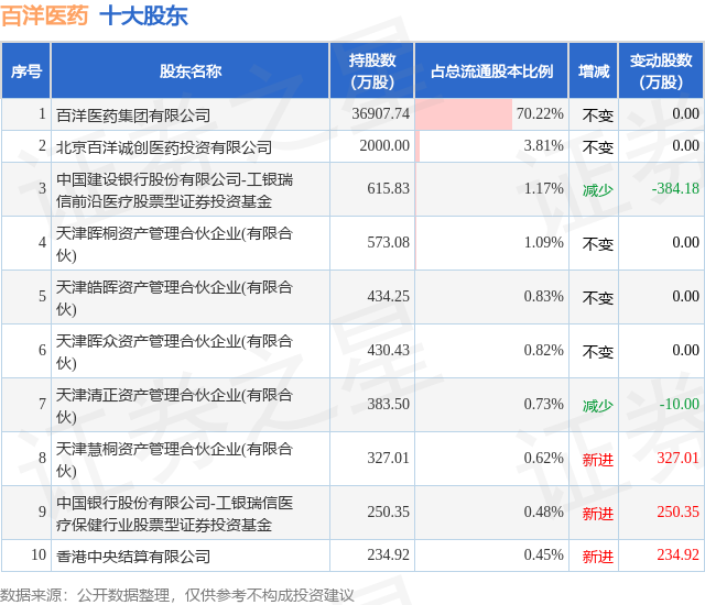 根据百洋医药2025年一季报公布的十大股东详情如下:
